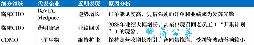 值得注意的是,行业复苏呈现显著的结构性分化。并非所有CRO都在裁员,部分细分领域反而在逆势扩张: