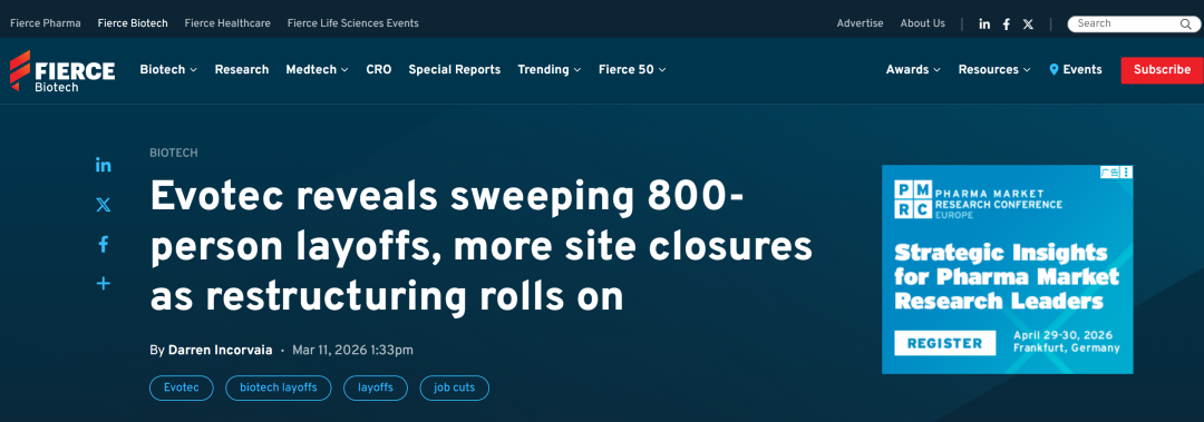 德国巨头Evotec正式官宣代号为“Horizon”(地平线)的深度转型计划:追加裁员约800人,并关闭4处全球园区。